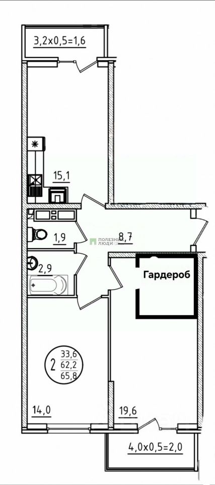 2к квартира с лучшей планировкой "Бабочка" в ЖК Арена!