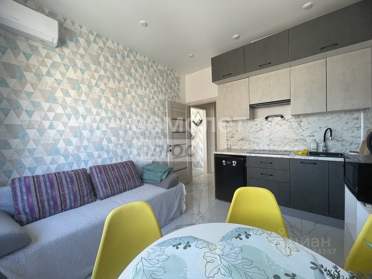 Вся необходимая техника: Встроенная кухня, плита, вытяжка, холодильник, 2 сплит-системы, мебель.