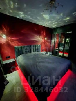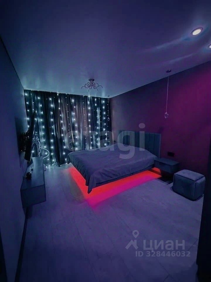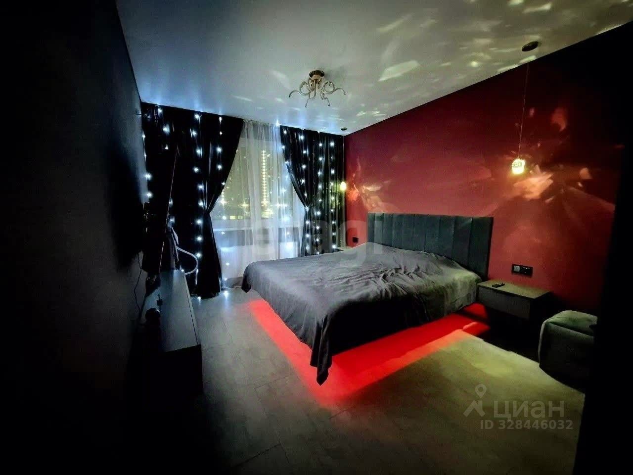 Подсветка также есть под кроватью в спальне — цвет регулируется с пульта, создавая уютную атмосферу.