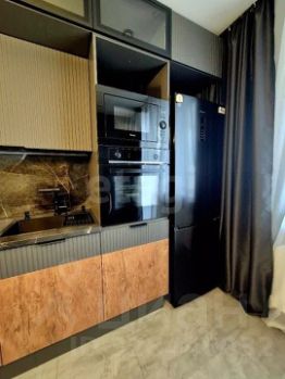 Кухня просторная, полностью укомплектована встроенной техникой: холодильник, духовой шкаф, микроволновая печь, купольная вытяжка.