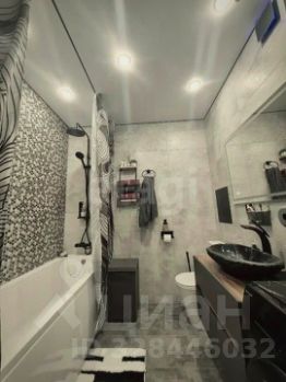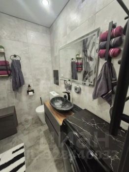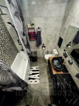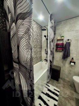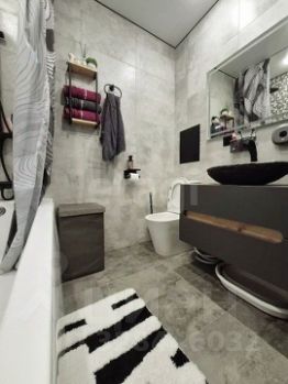 Санузел совмещённый, выполнен в стильной плитке: