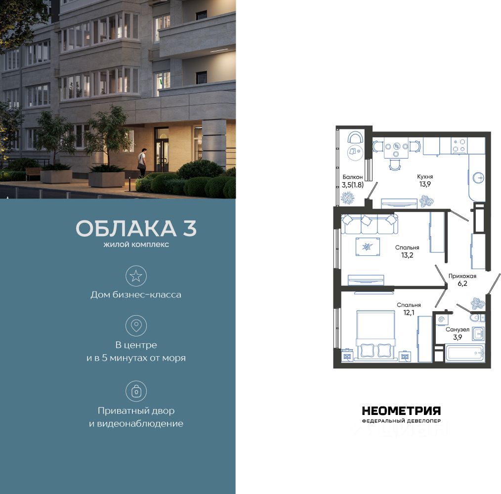 Продается квартира в жилом комплексе "Облака" от федерального девелопера "Неометрия".
