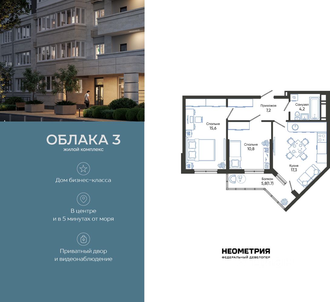 Продается квартира в жилом комплексе "Облака" от федерального девелопера "Неометрия".