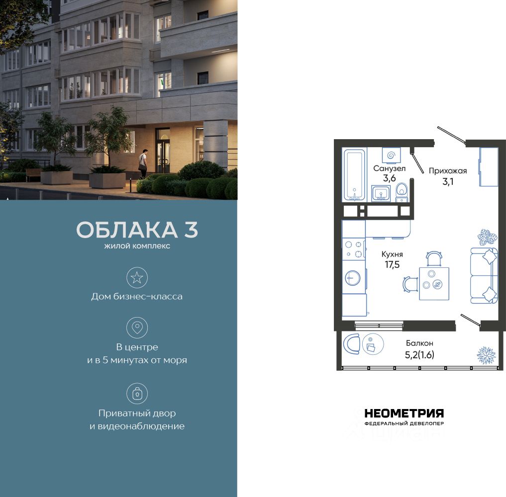 Продается квартира в жилом комплексе "Облака" от федерального девелопера "Неометрия".