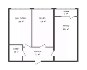 *Комнаты 15,8/18,6 м2;