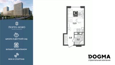 Срок сдачи: 4 кв. 2026, общей площадью 20.9 кв.м., на 15 этаже.