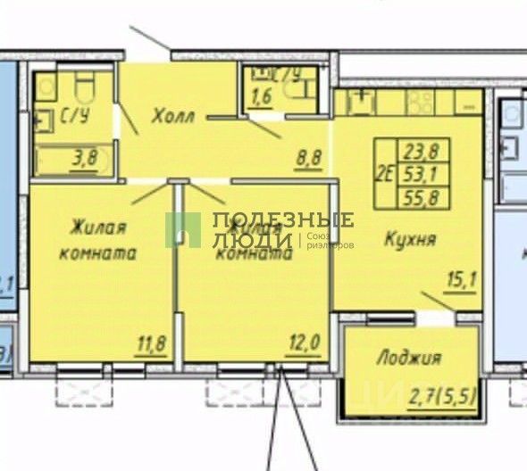 Кухня-гостиная 15 м²