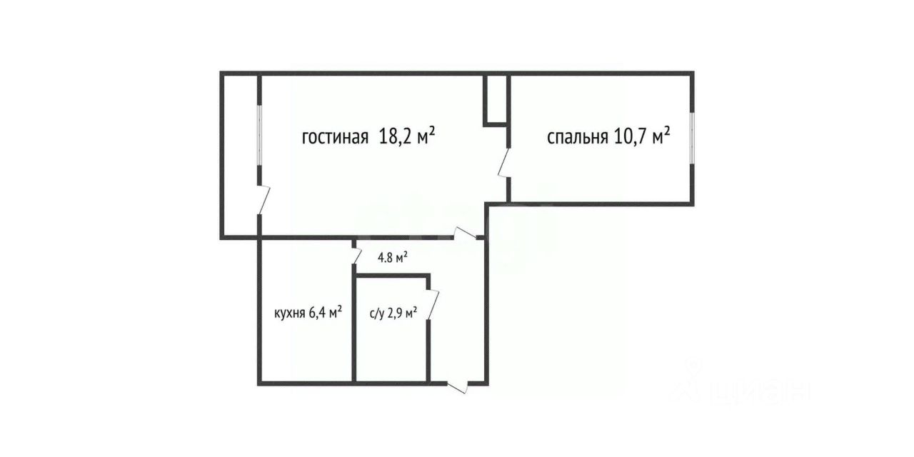 • Общая площадь: 43,8 кв.м