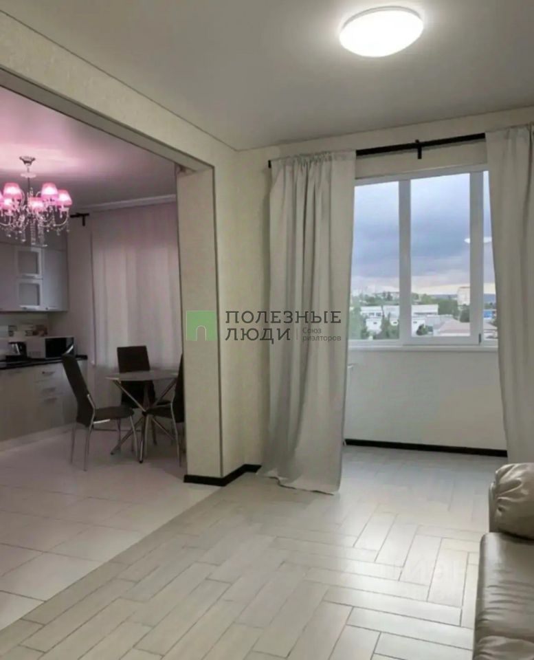 Большoй кoридоp, прoстоpнaя комнaтa с бaлкoном и большaя куxня