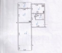 Общая площадь 54,5 кв.м