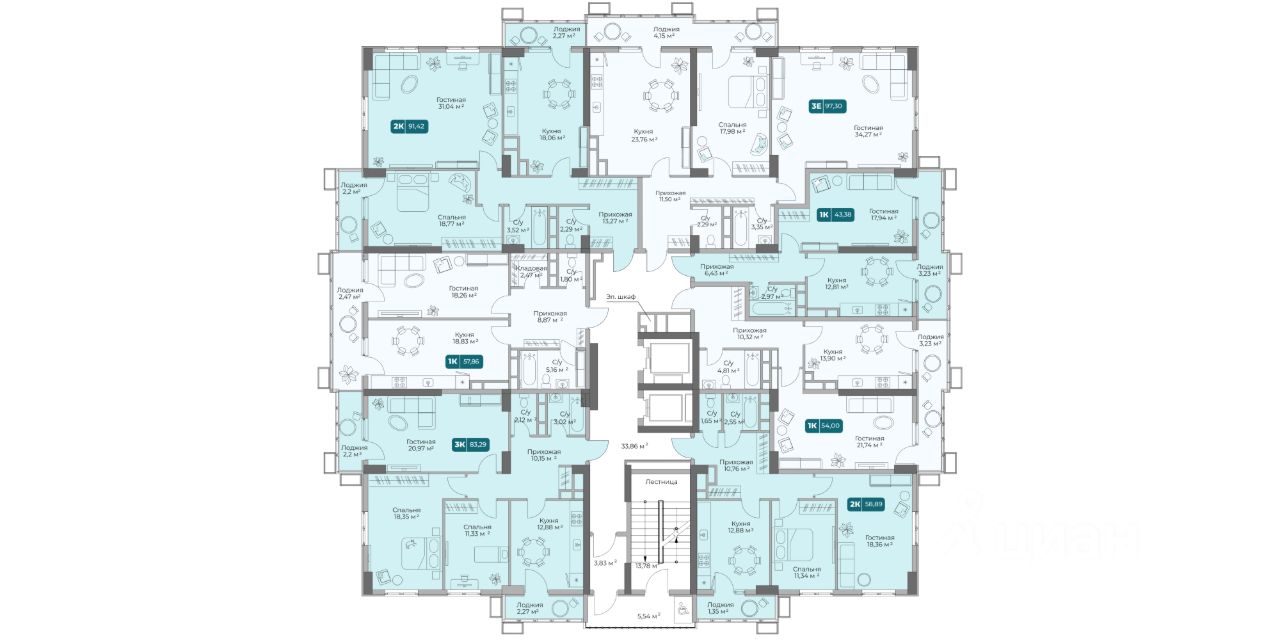 Уникальная 3-комнатная Квартира 83 площадью 83,29 кв.м. в ЖК "Золотой Берег" — 800 метров или 10 минут до моря, современный дизайн и все условия для комфортной жизни!