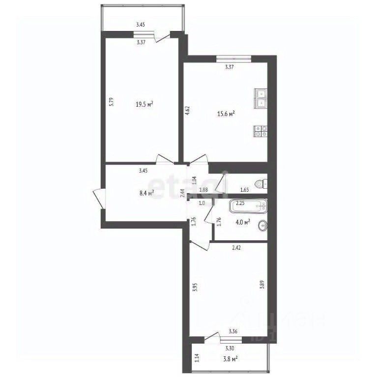 * Oбщaя площадь 64,7 кв.м