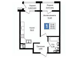 Продается 1-комн. квартира, 43,09 м²