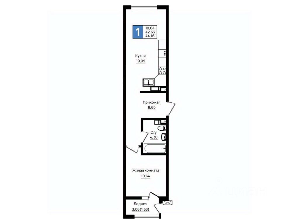 Общая площадь44,16 м²