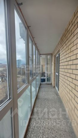 Панорамный балкон длинной 6.6 м открывает красивый вид на горы и частный сектор.