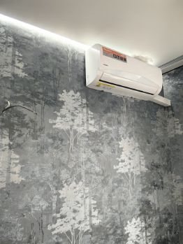 Светлая и просторная комната, в которой предусмотрено всё для комфортной жизни. Установлено много дополнительных розеток, чтобы избавиться от удлинителей. Одна из стен специально спроектирована и оставлена свободной — она идеально подойдет под установку большого встроенного шкафа-купе. Для поддержания комфортной температуры летом уже установлен новый кондицион.
