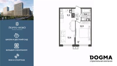 В продаже 1-комнатная квартира от застройщика! ЖК "Порто-Ново" г. Новороссийск, Литер 6