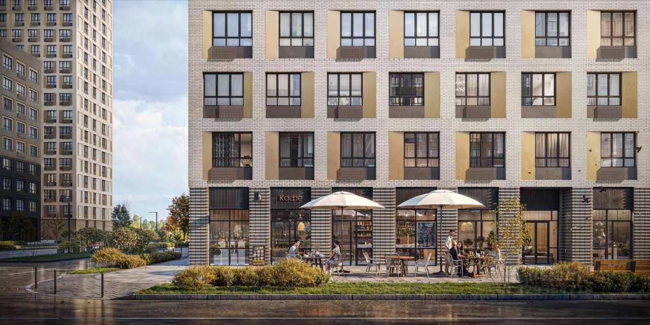 10 домов переменной этажности с террасами на десятом этаже. Дворовые пространства в виде "портов" со своей инфраструктурой: детские и спортивные зоны легко уживаются с зонами отдыха взрослых, а прогулочный бульвар с фонтаном придаёт кварталу ощущение полноты и гармонии жизни.
