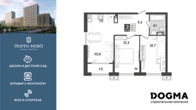 Срок сдачи: 4 кв. 2026, общей площадью 57.4 кв.м., на 15 этаже.
