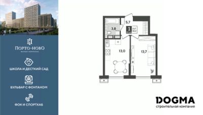В продаже 1-комнатная квартира от застройщика! ЖК "Порто-Ново" г. Новороссийск, Литер 10