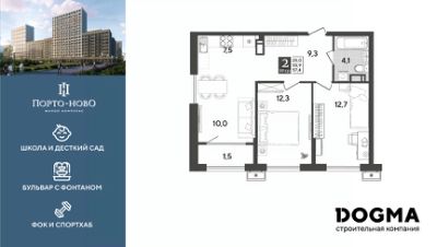 Срок сдачи: 4 кв. 2026, общей площадью 57.4 кв.м., на 18 этаже.