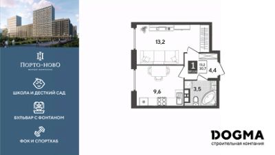 Срок сдачи: 4 кв. 2026, общей площадью 30.7 кв.м., на 8 этаже.