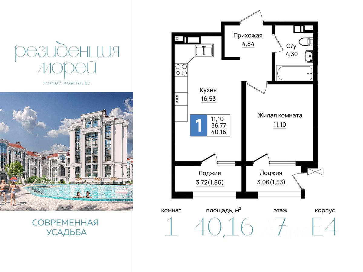 Общая площадь40,16 м²