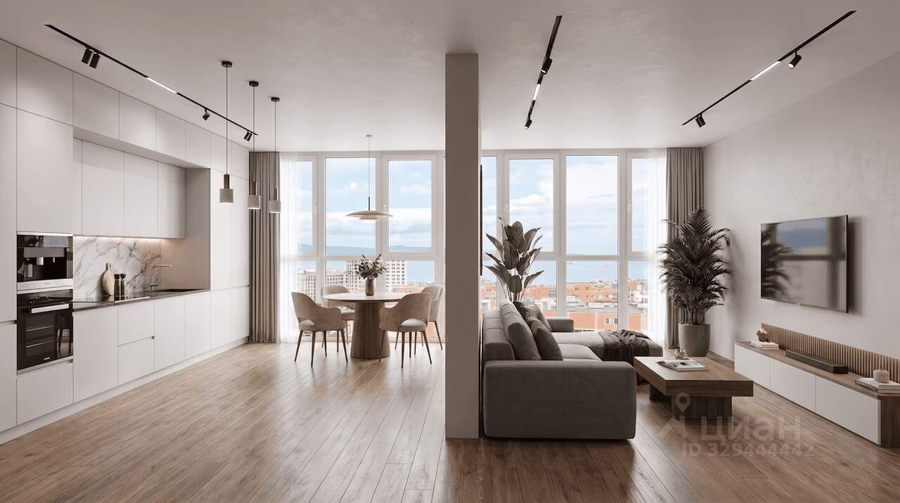 Мечтаете купить трехкомнатную квартиру на юге с видом нам море и горы? Тогда эта трехкомнатная квартира с кухней-гостиной и панорамными окнами во всех комнатах идеально Вам подходит.