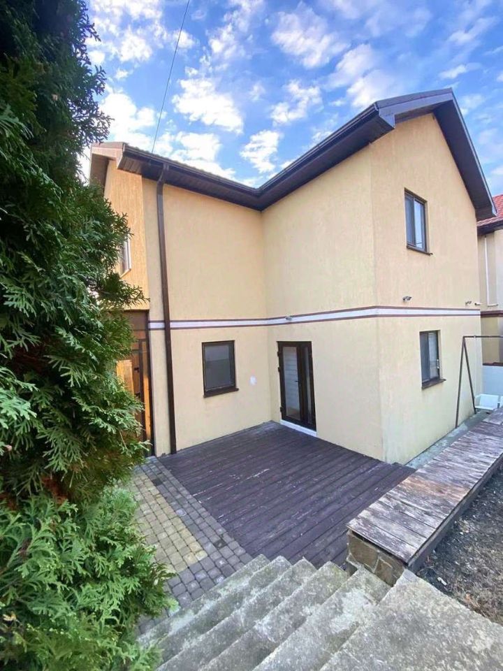 В доме 2 этажа - 3 комнаты, кухня-гостиная, 2 с/у, кабинет, остеклённая терасса на 2 этаже с прекрасным видом на горы