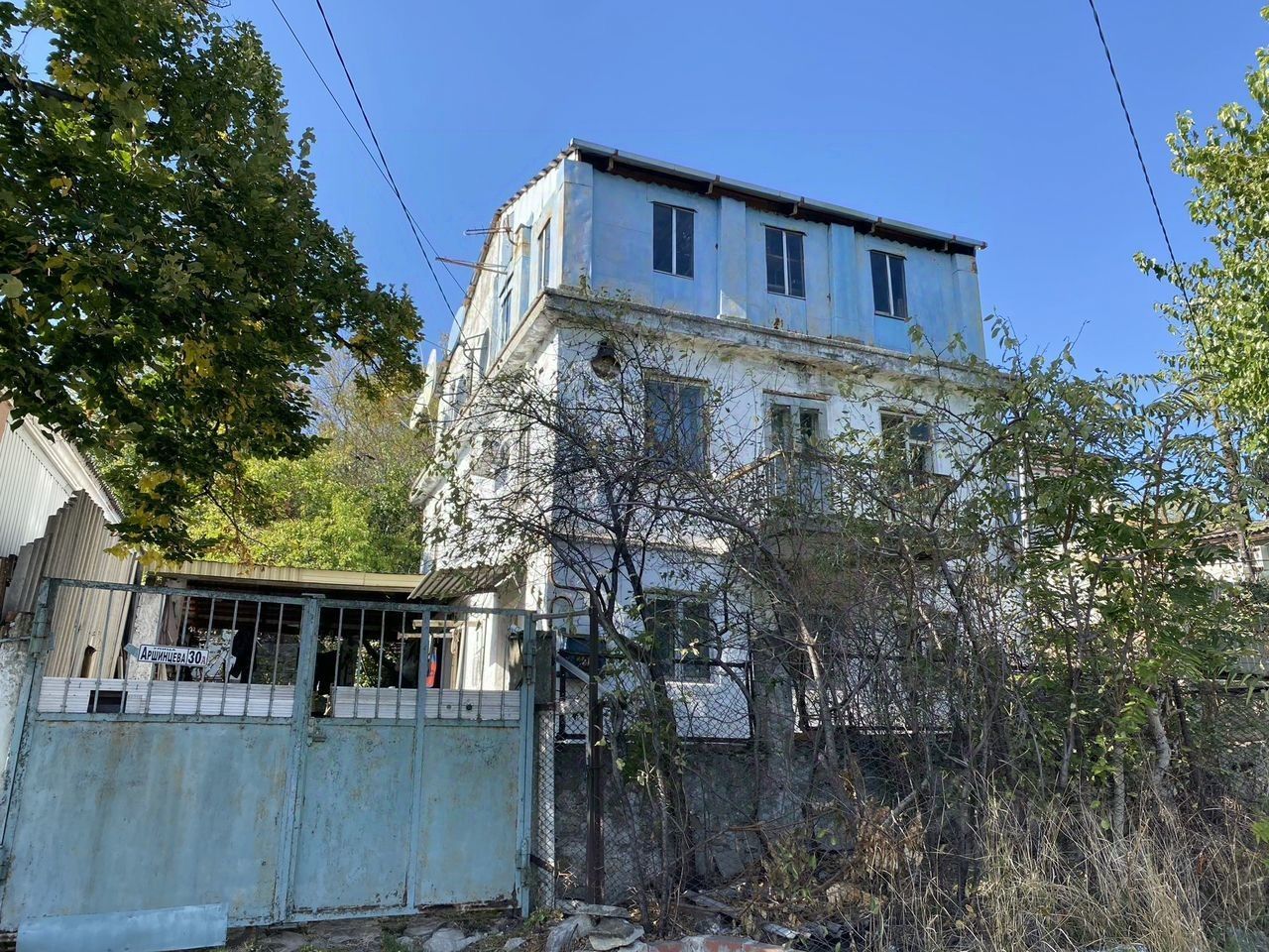 Продам 1/2 долю земельного участка площадью 5 сот(1/2 доля-2,5 сот.) и целый отдельно стоящий жилой дом, литер А, требующий ремонта на 1 этаже: кухня-13 кв.м., комната -12 кв.м., ванна- 6 кв.м. и кладовка,2 этаж:4 комнаты площадью -12,8,5,и7 кв.м., 3-й этаж мастерская-20 кв.м. на участке расположена летняя кухня, навес.