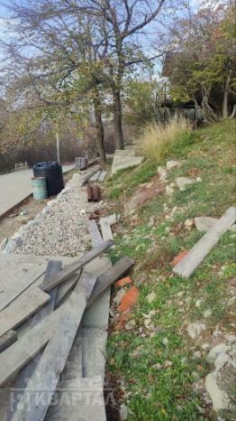 Участок находится на склоне, много деревьев, кустарников, ароматные лечебные травы (чабрец, шалфей). Рядом лес и горы. Прекрасный вид на город и бухту.