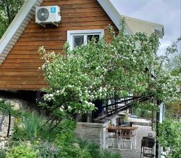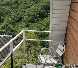 Из окна выходит прекрасный вид на ущелье и лес, где текут Луначарские водопады.