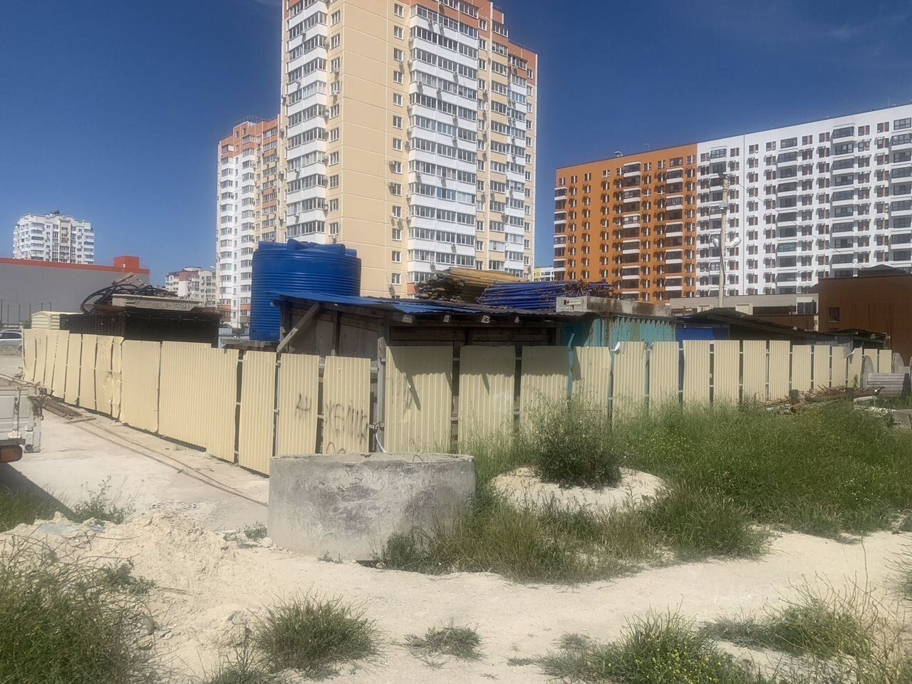 Собственник продаёт земельный участок правильной формы в южном районе, полностью развита инфраструктура, район плотно застроен многоквартирными домами, рядом расположены гипермаркет Лента, торговый центр с тренажёрным залом и аптекой. На граничащем по меже земельном участке достраивается 2-ой торговый центр.
