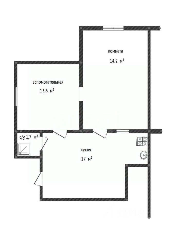- вспомогательная - 13,6 м2