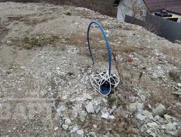 По меже газовая труба, столб электричества 15 кВт, установлена скважина на участке, забор с двух сторон.