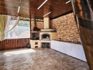 1 этаж: Просторная кухня + столовая + гостиная с двумя выходами (основной + на беседку). Гостевой санузел.