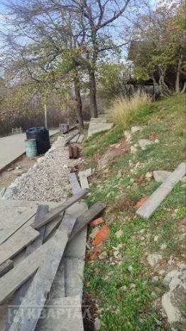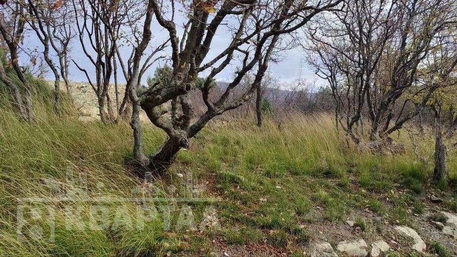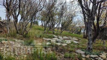 Участок находится на склоне, много деревьев, кустарников, ароматные лечебные травы (чабрец, шалфей). Рядом лес и горы. Прекрасный вид на город и бухту.