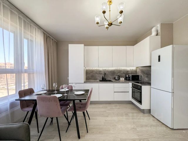 открытый балкон, два санузла, кухня-гостинная, СВЧ, варочная панель, посуда, посудомойка, холодильник, измельчитель отходов, кофемашина.
